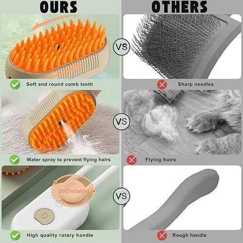 • Fácil de usar y peinar: Las púas de este cepillo de vapor para gatos tienen un diseño en espiral que absorbe el pelo eficazmente. El peinado regular elimina el exceso de pelo muerto del subpelo de tu mascota, brindándote un hogar limpio y sin pelo.