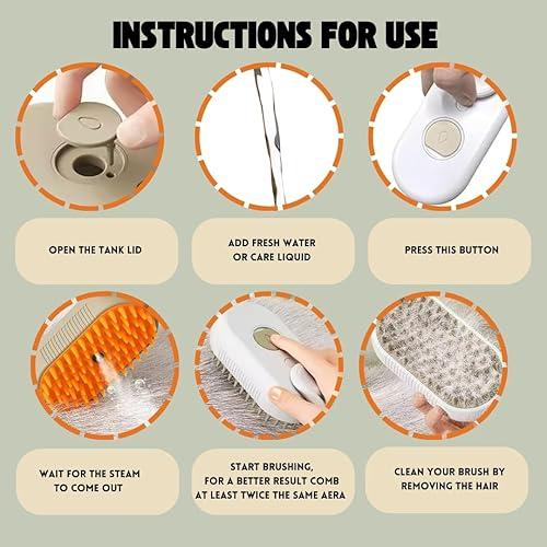 • Cuidado del pelo de tu mascota: Usar este cepillo de vapor para mascotas no solo reduce la caída del pelo, sino que también le da a tu mascota un pelaje más sano y brillante. Tu mascota lucirá más fresca después de cada sesión de aseo y disfrutará más de tus cuidados.